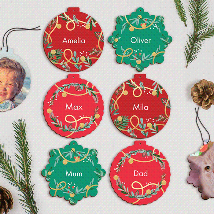 Christmas decorating just got personal with double sided personalised Christmas tree ornaments. Choose from festive designs & shapes then customise with a short message, a photo or both!