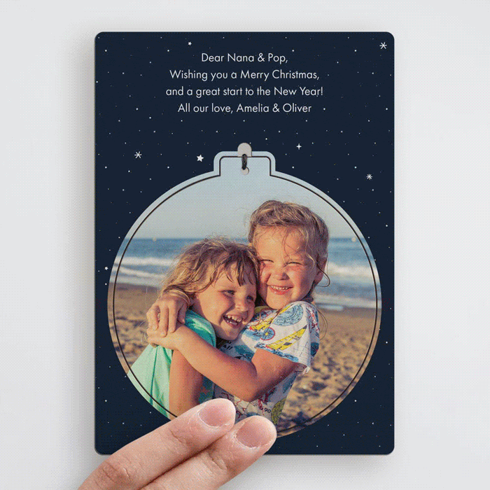 Your Personalised Christmas Baubles can double up as a Personalised Christmas Card! Simply add a short message that appears on the wooden card that baubles are presented in. It's another personalised touch to an already personalised Christmas gift.