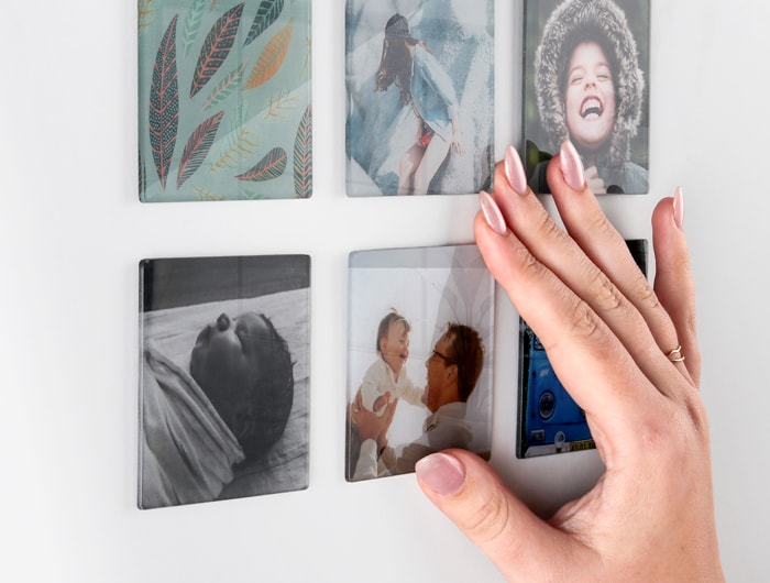 Photo Wall can be purchased in "packs" (a pack of 6 for sizes XS, S, M & a pack of 1 for sizes L, XL). Select your pack by choosing your product (Stickers or Tiles), shape and size. Each individual Sticker/Tile in your pack can be either an uploaded photo or an image chosen from our Art Library. Note that sizes in Photo Wall Square work together. Simply pair Square Small (S) with Large (L) or Medium (M) with Extra Large (XL) for a perfectly aligned customised photo art wall.